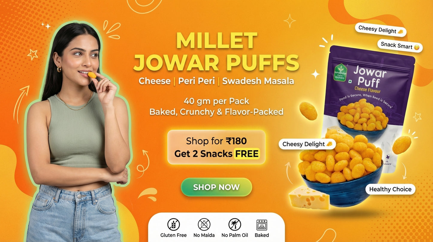 I would really recommend the Millet crackers snacks and jowar puffs from Farm growers ...they tastes extremely good and provide healthy snacking solution to all ages .And specially the granola bars which are too good in taste and nutrients wise .I highly recommend theFarm growers snacks .