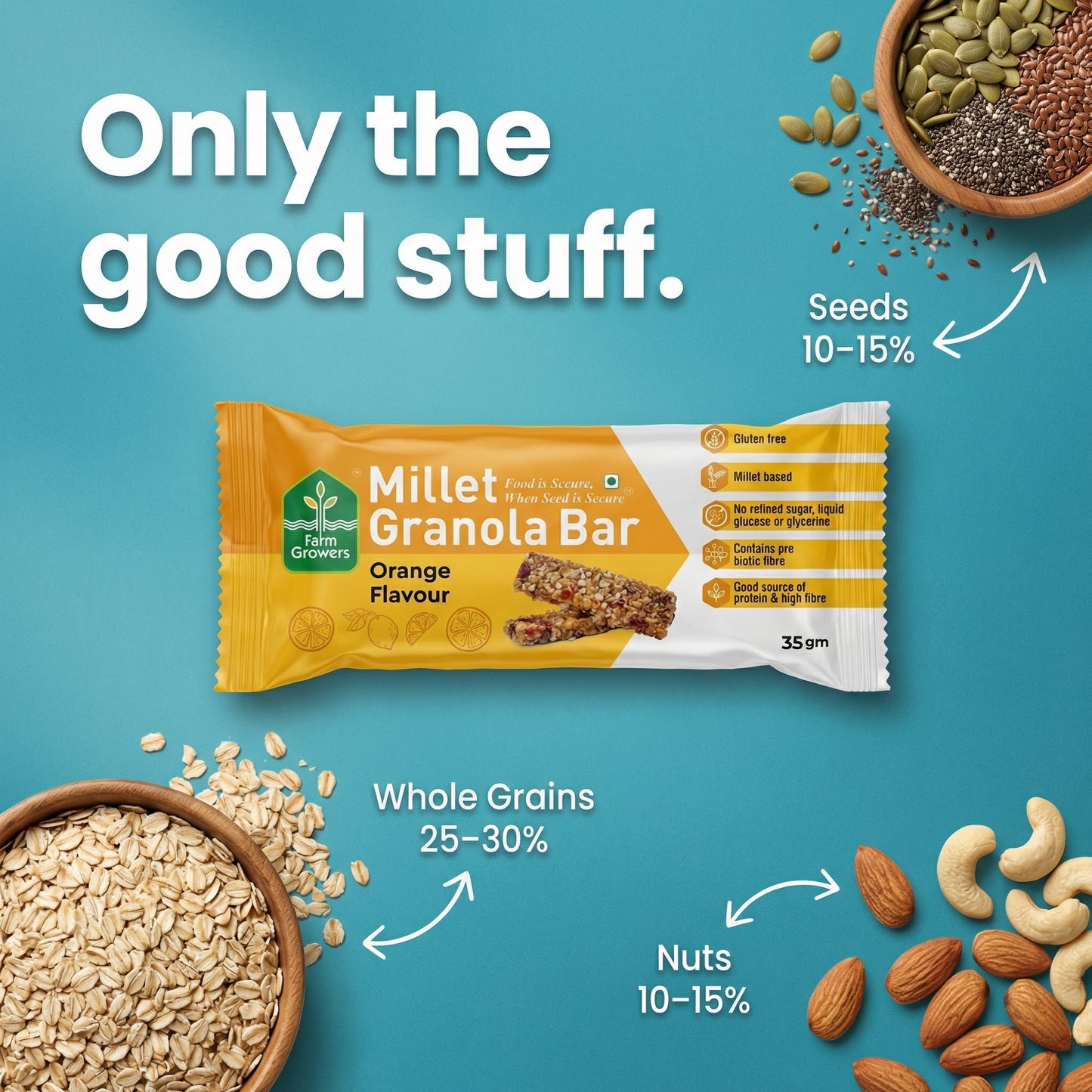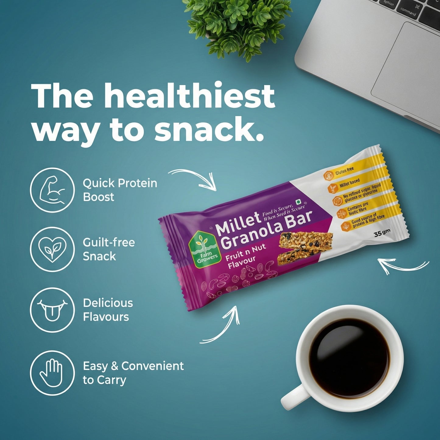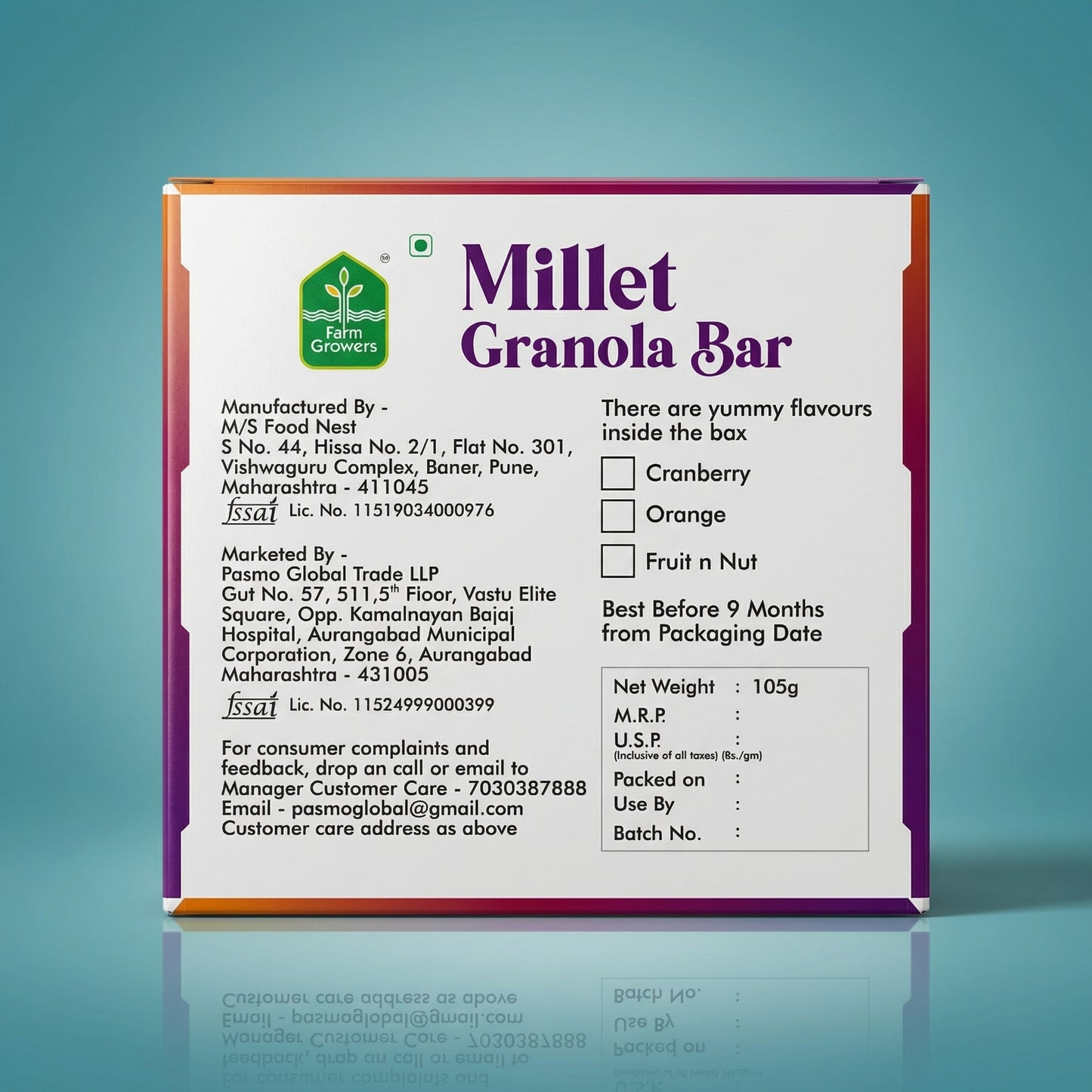 Whether you're rushing to work, hitting the gym, or need a midday pick-me-up, our millet granola bars are your perfect companion. Conveniently packaged for busy lifestyles, they fit easily in your bag, desk drawer, or gym locker.