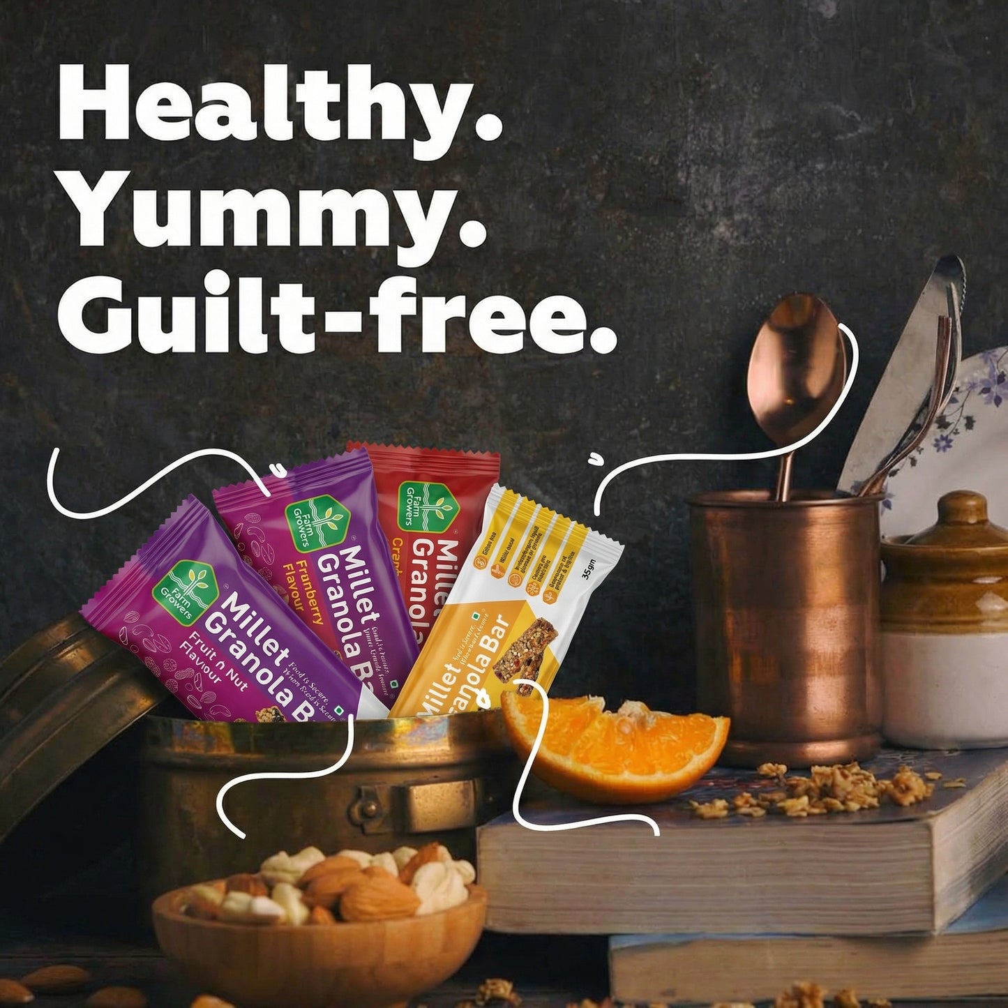 Packed with the goodness of ancient millets, these granola bars are a healthy and convenient snacking option. Each flavor offers a unique taste experience:
