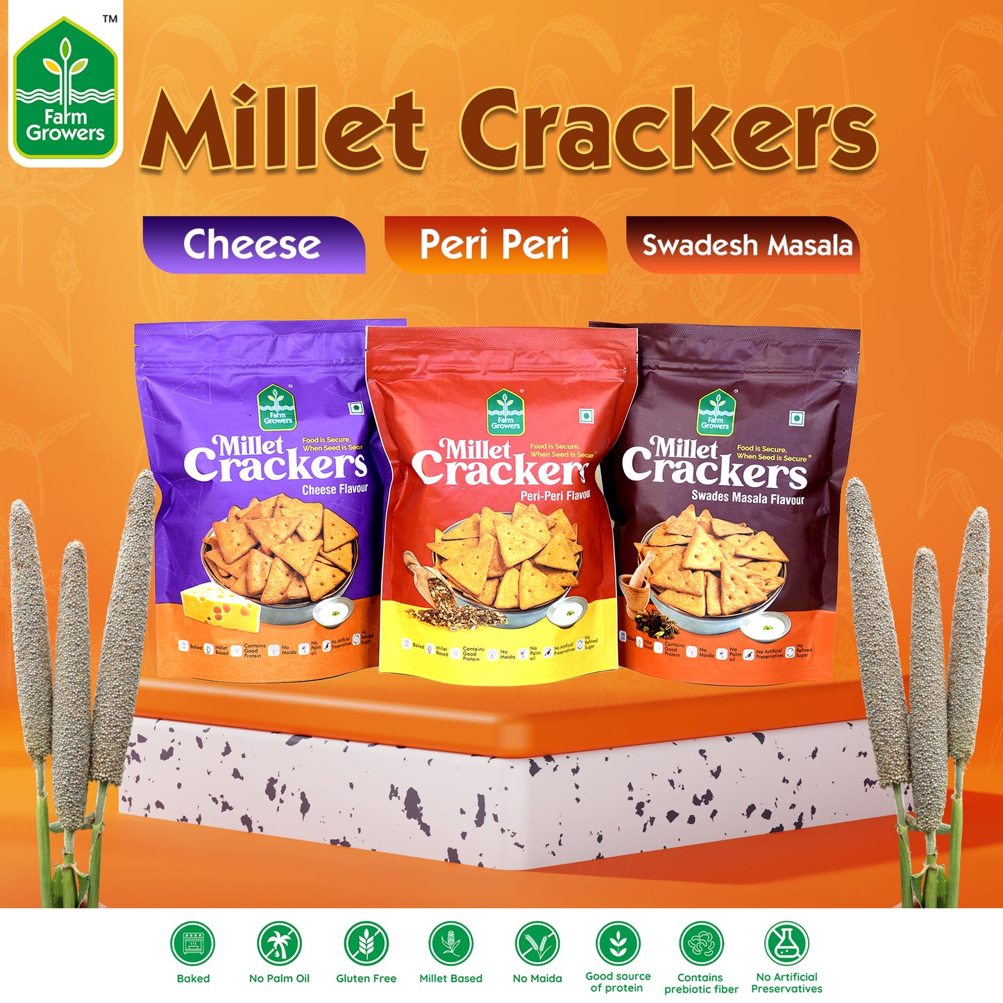 Jowar Puffs (Cheese, Swadesh Masala, Peri Peri) & Millet Crackers (Cheese, Peri Peri, Swadesh Masala)