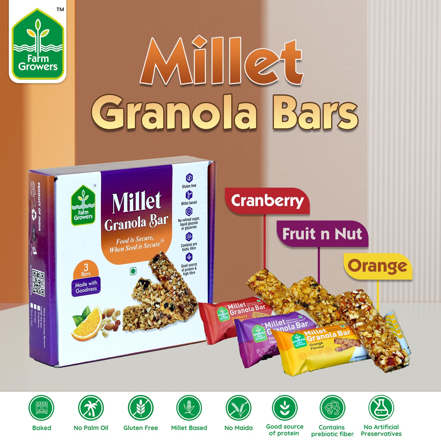 Granola Bars (Fruit & Nut, Cranberry, Orange) & Millet Cookies (Orange, Ragi Choco)